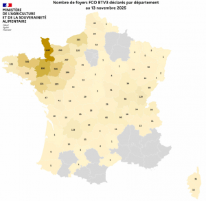 - 6 709 foyers de FCO sérotype 3 (BTV-3)