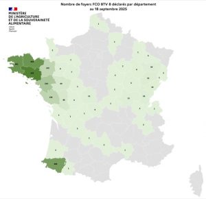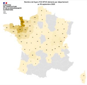 Une reprise de la circulation du virus FCO-3 est observée depuis une dizaine de jours, en particulier en Picardie. À ce jour, la situation se décline comme suit :